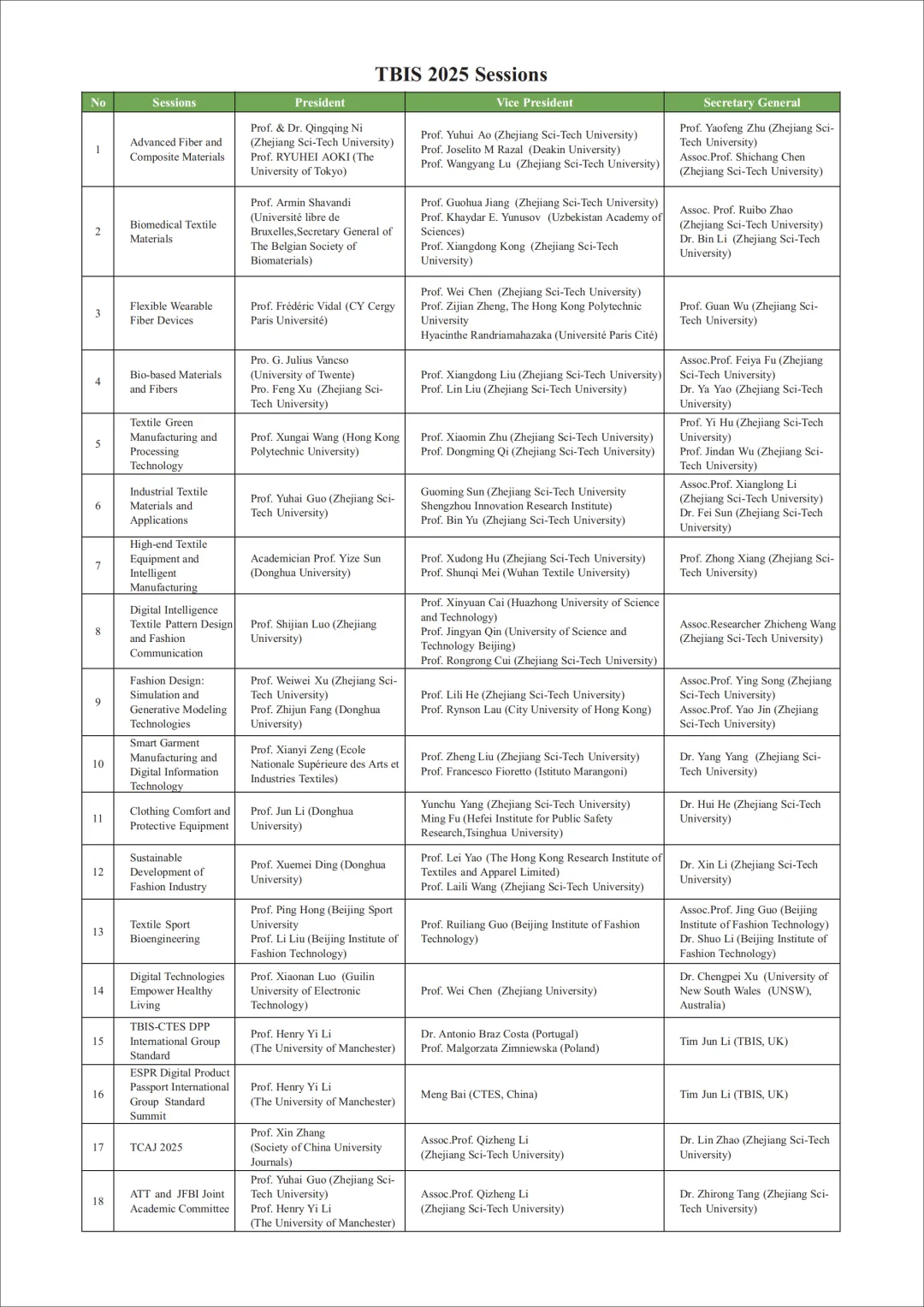 2025年8月17日至20日,由浙江理工大学、纺织生物工程与信息学会(TBIS)、英国曼彻斯特大学、生物基纤维材料全国重点实验室、浙江省现代纺织技术创新中心、浙江纺织工程学会联合主办的第十八届纺织生物工程及信息国际会议(TBIS 2025)大会在杭州成功举办。中国工程院院士、浙江理工大学校长陈文兴,中国科学院院士朱美芳,中国工程院院士徐卫林,中国工程院院士孙以泽,TBIS 2025大会主席、浙江理工大学副校长姚菊明,TBIS主席、曼彻斯特大学教授李翼,武汉纺织大学副校长王栋,北京体育大学副校长洪平等专家学者,来自中国、英国、美国、法国、澳大利亚、荷兰、德国、意大利、葡萄牙、波兰、捷克、印度、韩国、日本、泰国、乌兹别克斯坦等18个国家相关领域专家学者及600余位代表参加本届大会。