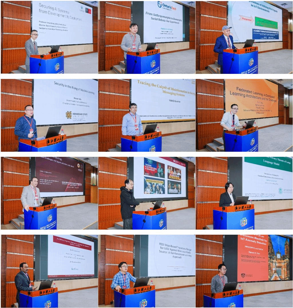 会议邀请了澳门城市大学副校长周万雷教授、澳大利亚斯威本科技大学项阳教授(IEEE Fellow)、上海交通大学李颉教授(日本工程院外籍院士、IEEE Fellow)、加拿大安大略理工大学洪泽权教授、美国肯尼索州立大学伍绍恩教授、意大利萨勒诺大学Aniello Castiglione教授、新加坡管理大学杨国民教授、印度安那大学Vijayakumar Pandi教授、香港理工大学区文浩教授、澳门城市大学朱天清教授、日本会津大学苏春华教授、美国福特汉姆大学Zakirul Alam Bhuiyan教授、澳大利亚南昆士兰大学吴迪教授和澳大利亚悉尼大学Nguyen Hoang Tran教授作了精彩的学术报告。报告主要围绕人工智能安全、车联网、大数据安全、下一代通信技术和未来网络等领域展开。