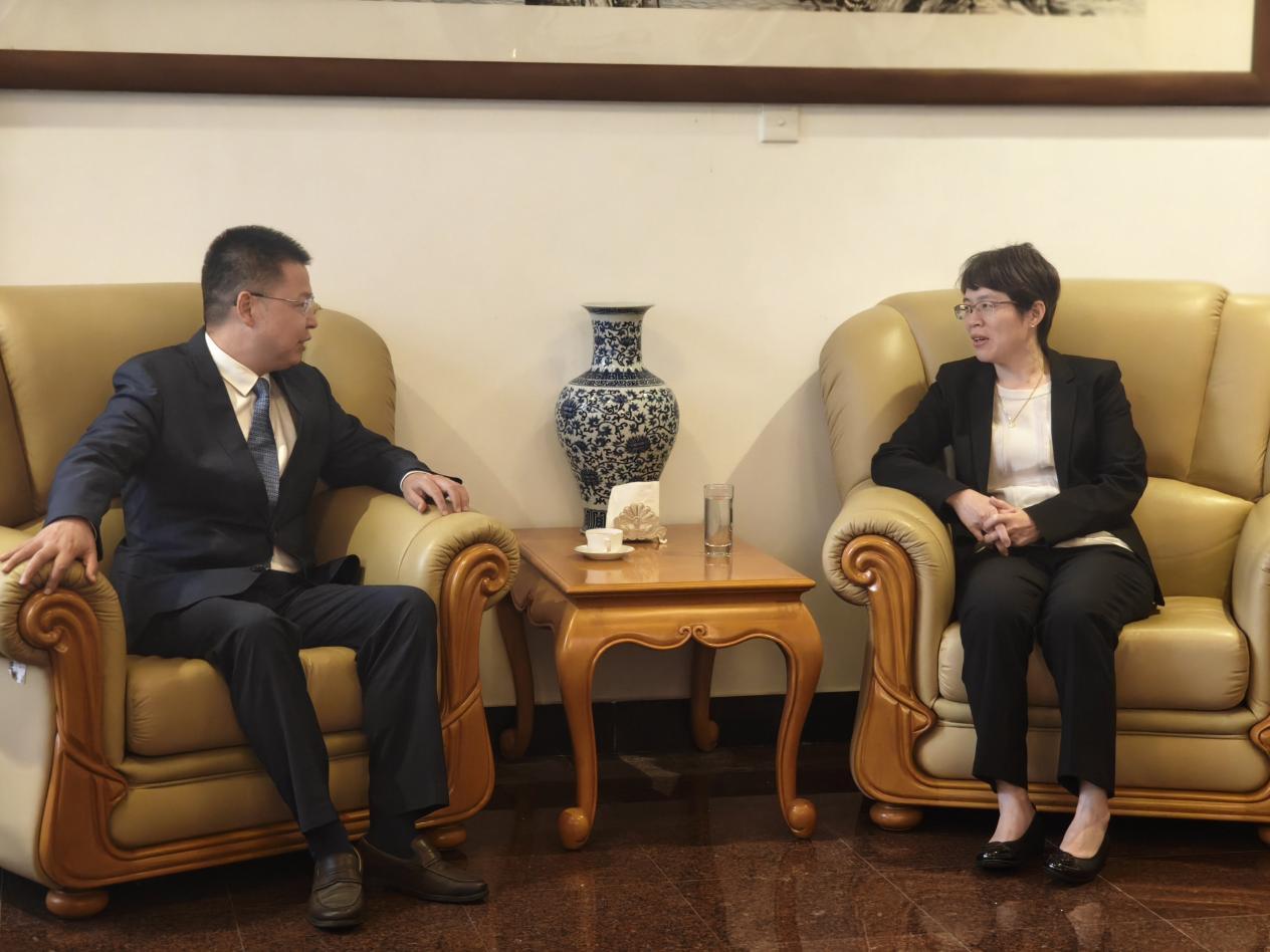 在毛里求斯期间,代表团一行拜会了我驻毛里求斯大使黄世芳。赵全军介绍了浙江理工大学办学情况及孔子学院建设进展,感谢大使馆长期以来的支持,并希望大使馆继续在孔子学院建设与发展规划中给予指导。黄世芳大使充分肯定了毛大孔院自成立以来取得的成绩。她希望学校依托学科特色优势,拓宽合作网络,积极传播丝绸文化,探索“丝路学院”等品牌建设,深化与当地教育、科技等各界的合作,助推中毛两国友好关系可持续发展。