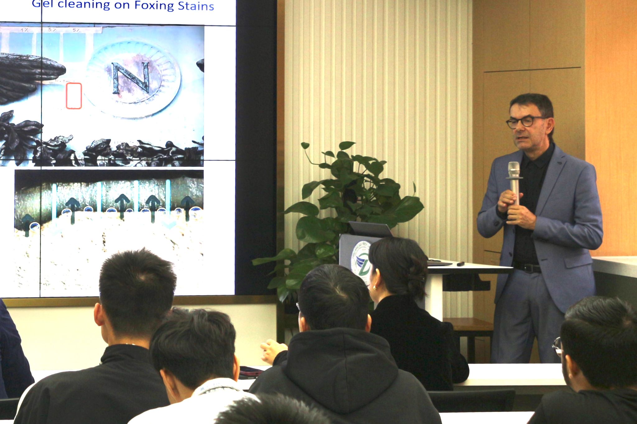 来访期间,安东尼奥在24号楼415报告厅作了题为“Research Activity of Institute of Heritage Science & Standards in Cultural Heritage Field”的精彩学术报告,并与相关领域的青年学者开展了深入交流。报告会由材料科学与工程学院周旸教授主持。