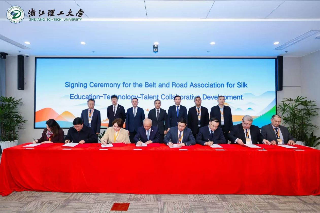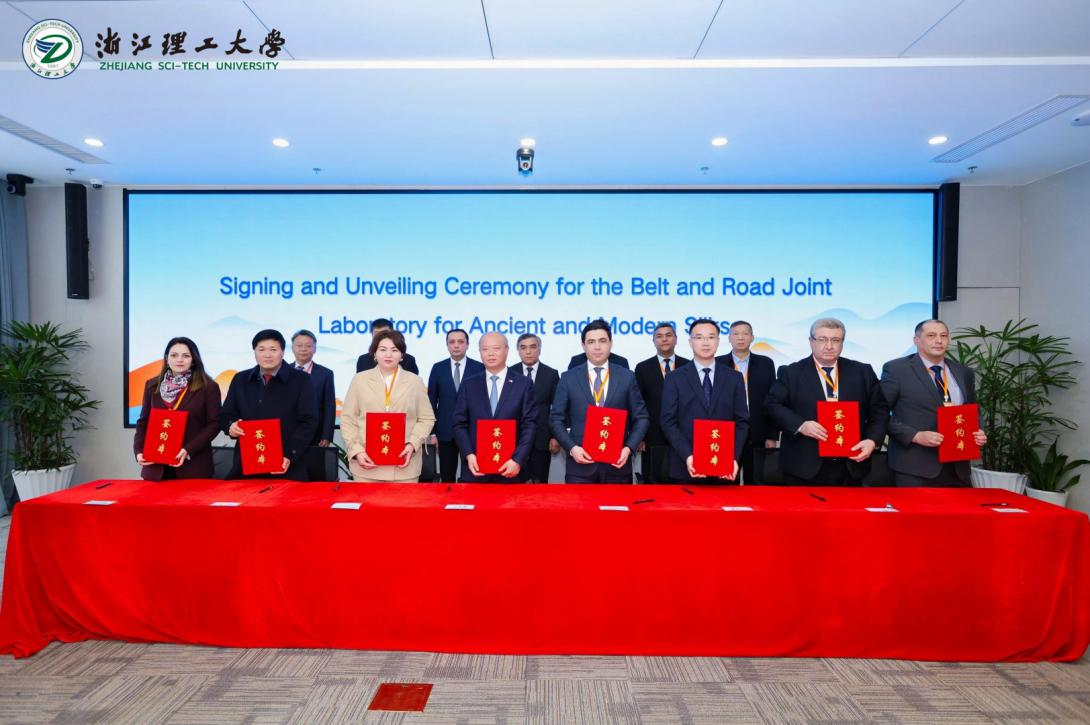 12月23日,由浙江理工大学联合乌兹别克斯坦、哈萨克斯坦的5所高校与科研机构,以及塔里木大学、杭州纺织机械集团有限公司共同发起筹建的“‘一带一路’丝绸教科人协同发展联合体”暨“古今丝绸‘一带一路’联合实验室”签约仪式在浙江理工大学举行。