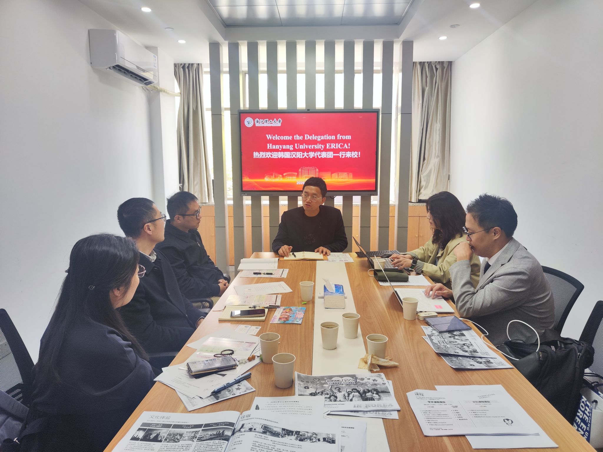 座谈会上,严博、付彩云分别就学院的学科建设、人才培养及国际合作需求作了介绍。双方还针对2026年暑期交流项目进行了细致探讨。双方同意,依托近年暑期项目的成功经验,加大汉阳大学暑期项目的宣传推广力度,鼓励更多学生赴韩研学。此外,双方还就机械工程、生命科学等领域的专业匹配度与定制项目内容进行了初步对接,为后续开展更深层次的合作办学奠定基础。